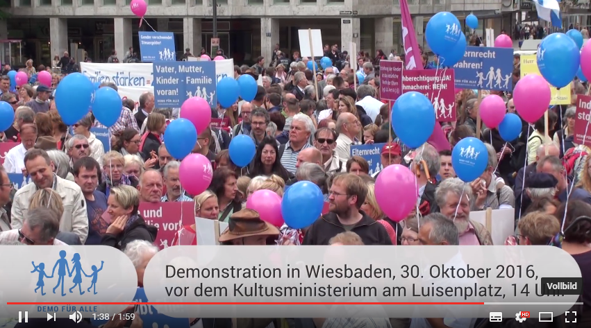 Bitte nehmen Sie sich die Zeit und kommen Sie am Sonntag, den 25. Juni 2017, um 15 Uhr zur DEMO FÜR ALLE auf den Luisenplatz (vor dem Kultusministerium) nach Wiesbaden!
