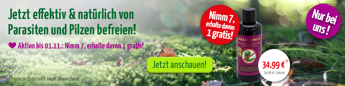 Da die kostbare Kur aber nicht nur ungebetene Gäste vertreibt, sondern gleichzeitig den Darm pflegt, wird den Schädlingen gleich noch die Lebensgrundlage für eine Neubesiedlung im Körper entzogen. Kein Wunder, dass die Parasitenkur innerhalb kürzester Zeit zu einem unserer Besteller avanciert ist!