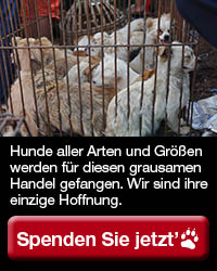 Weltweiter Protest – Im südchinesischen Yulin findet im Juni das alljährliche „Hundefleisch-Festival“ statt. Zehntausende Hunde, aber auch Katzen werden, bevor sie auf dem Teller landen, brutal gequält. Je mehr Schmerzen der Hund oder die Katze erleiden, desto mehr Adrenalin wird im Körper ausgeschüttet. Dies gewährleistet, dass das Fleisch zäh wird. Die Kunden fordern zähes Fleisch, weil sie fälschlicherweise glauben, zähes Fleisch steigert die Potenz des Mannes. Auch gestohlene Haustiere oder kranke Straßenhunde laden in den Kochtöpfen. Menschen aus China und der ganzen Welt rufen zum Protest auf.
